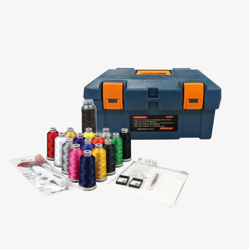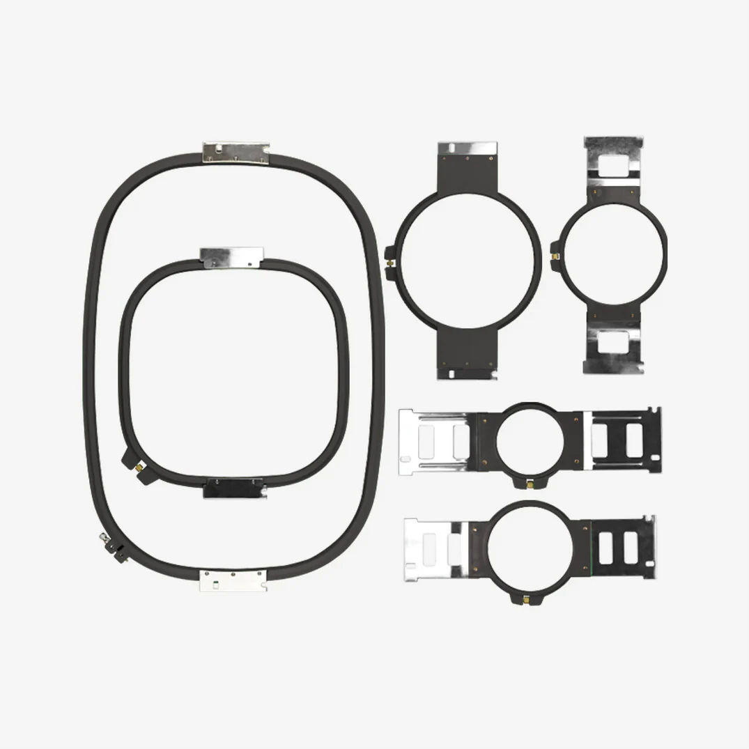 4 rámečky, 2x rám na čepice, 1x vyšívací aparát na čepice, 1x přípravná stanice na čepice |