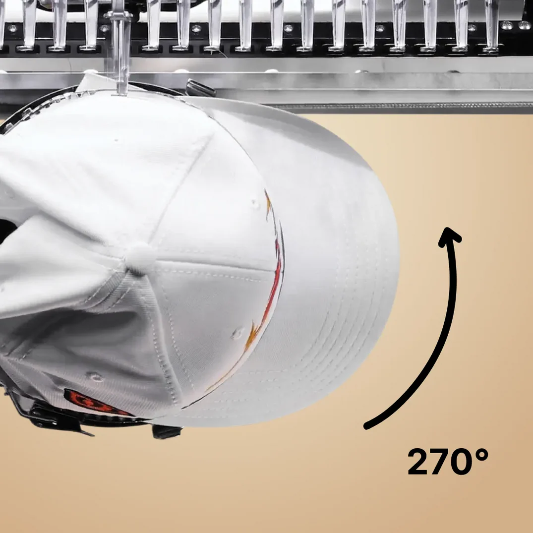 Zažijte bezproblémové vyšívání čepic s naší rotačním aparátem o 220° v jednom kroku, což zajistí perfektní umístění vzoru pokaždé. Maximalizujte svou kreativitu a efektivitu snadným a přesným přístupem k těžko dostupným místům na čepicích.